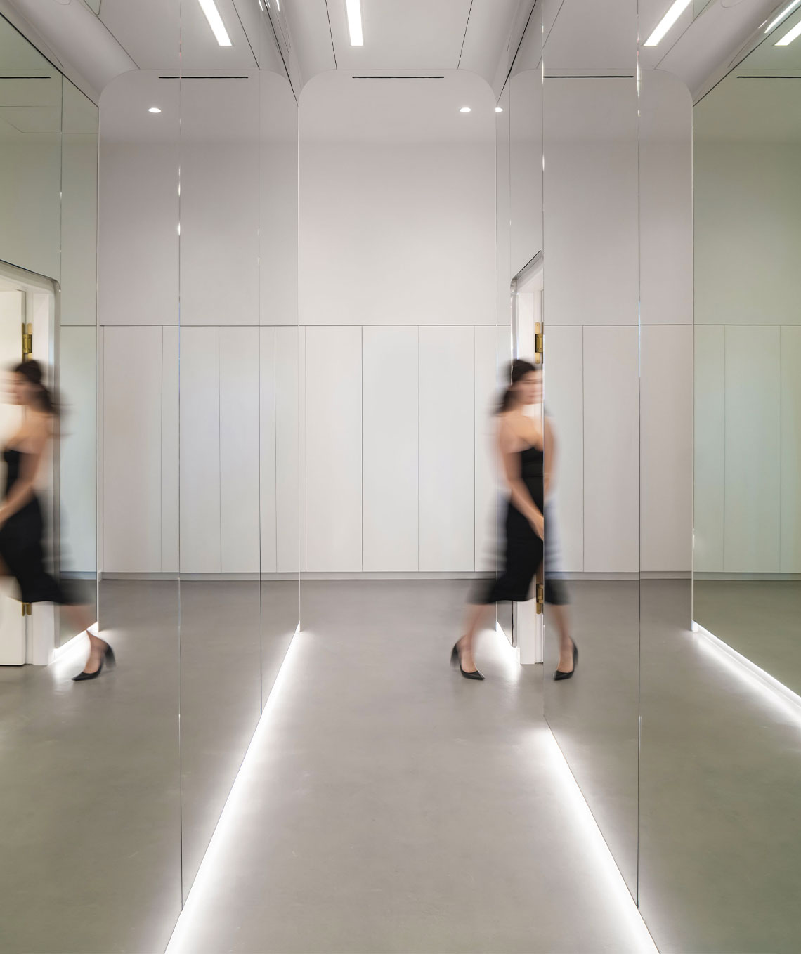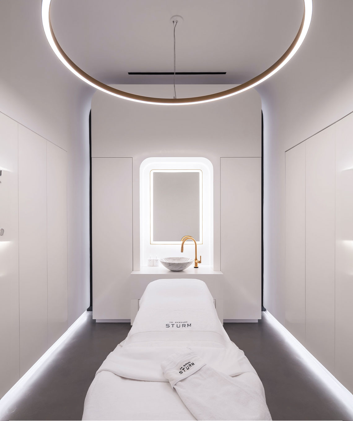 Every detail in this location was custom made specifically for this location; dibond radius ceilings, veneer plaster make – up and center table stations, the custom millwork and furniture. Much effort went in to getting these details correct and executed for this clients second US location.