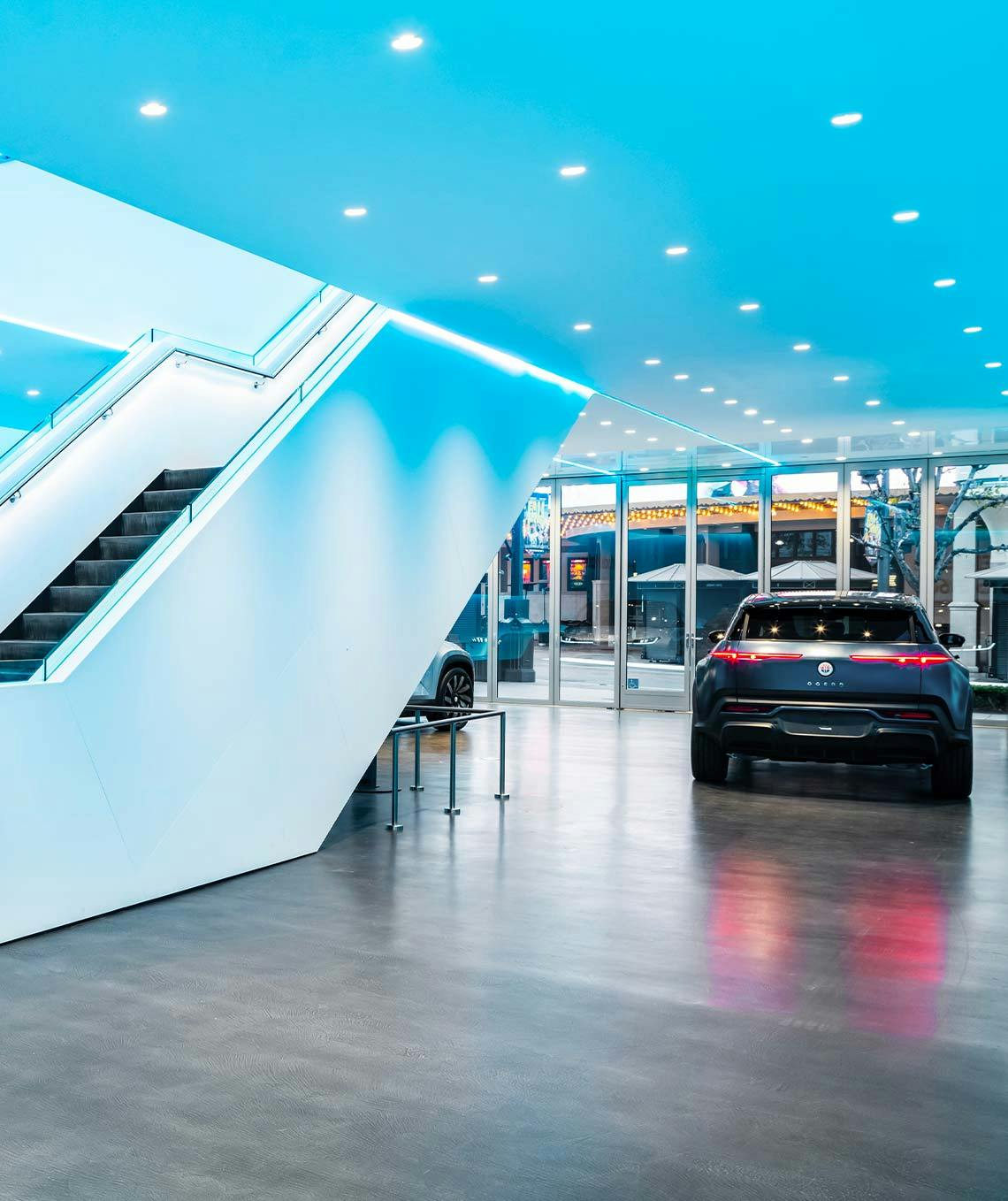 Unfortunately, this build did not last the fall of the brand. Completed and closed two months after opening. Designed by Gensler to be a clean minimalistic home to represent the potentials of electric motor vehicles. Ferrante Koberling did a full interior / exterior build bringing this sort lived showroom to life.