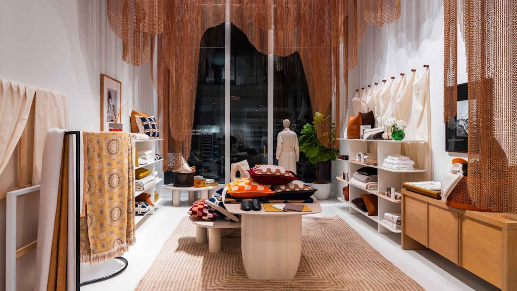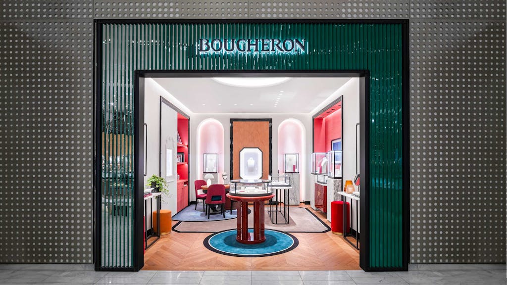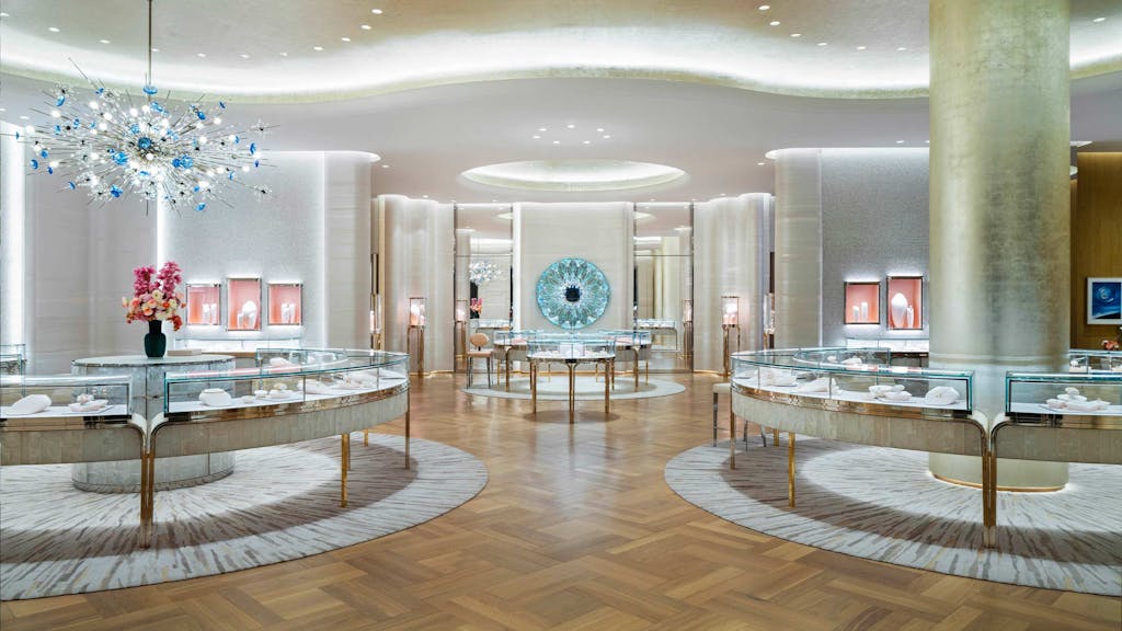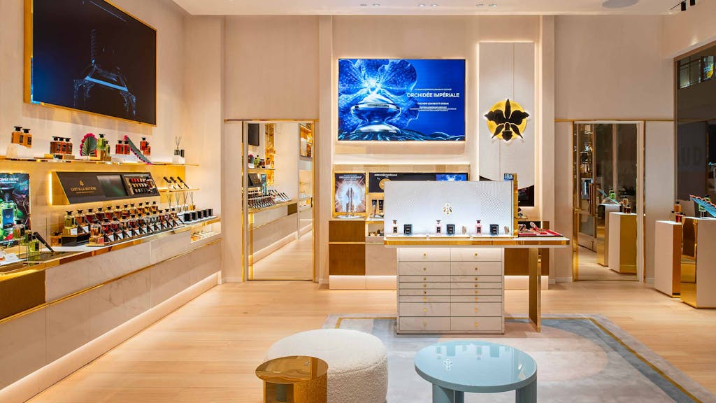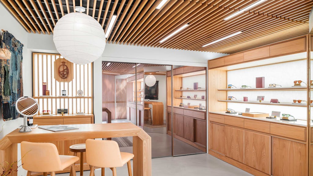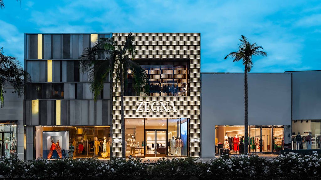 This small space is a show piece for the brand. With custom made wood glazing system and beautiful stone and plaster interior the space glows when illuminated. It is a special jewel located on the first floor of South Coast Plaza.