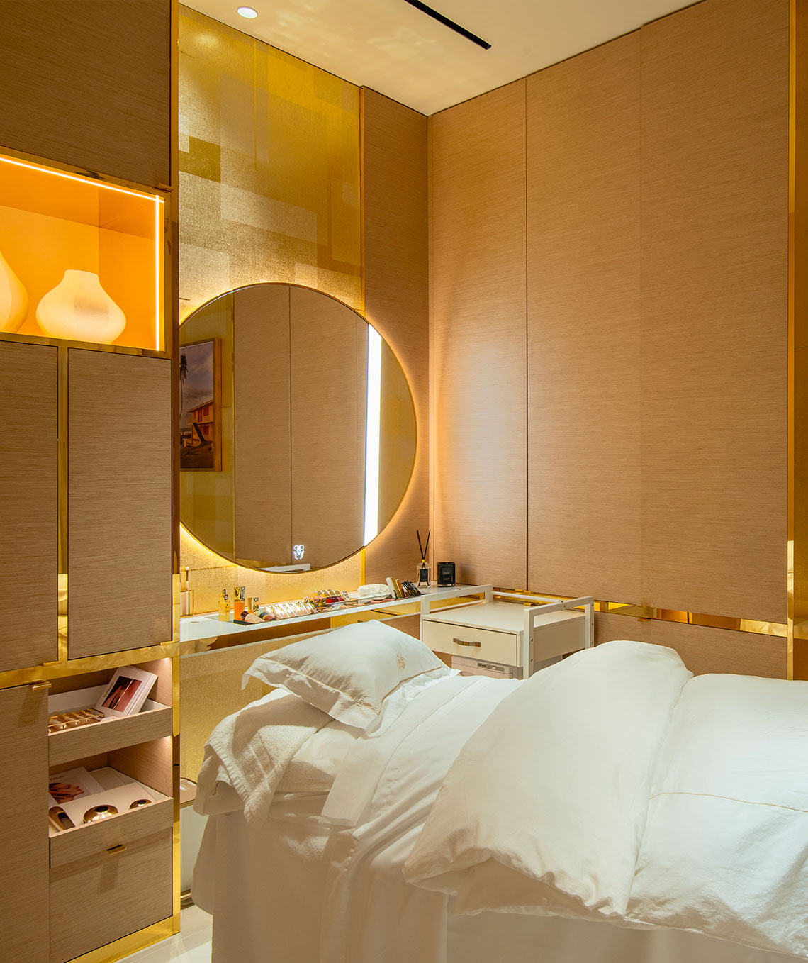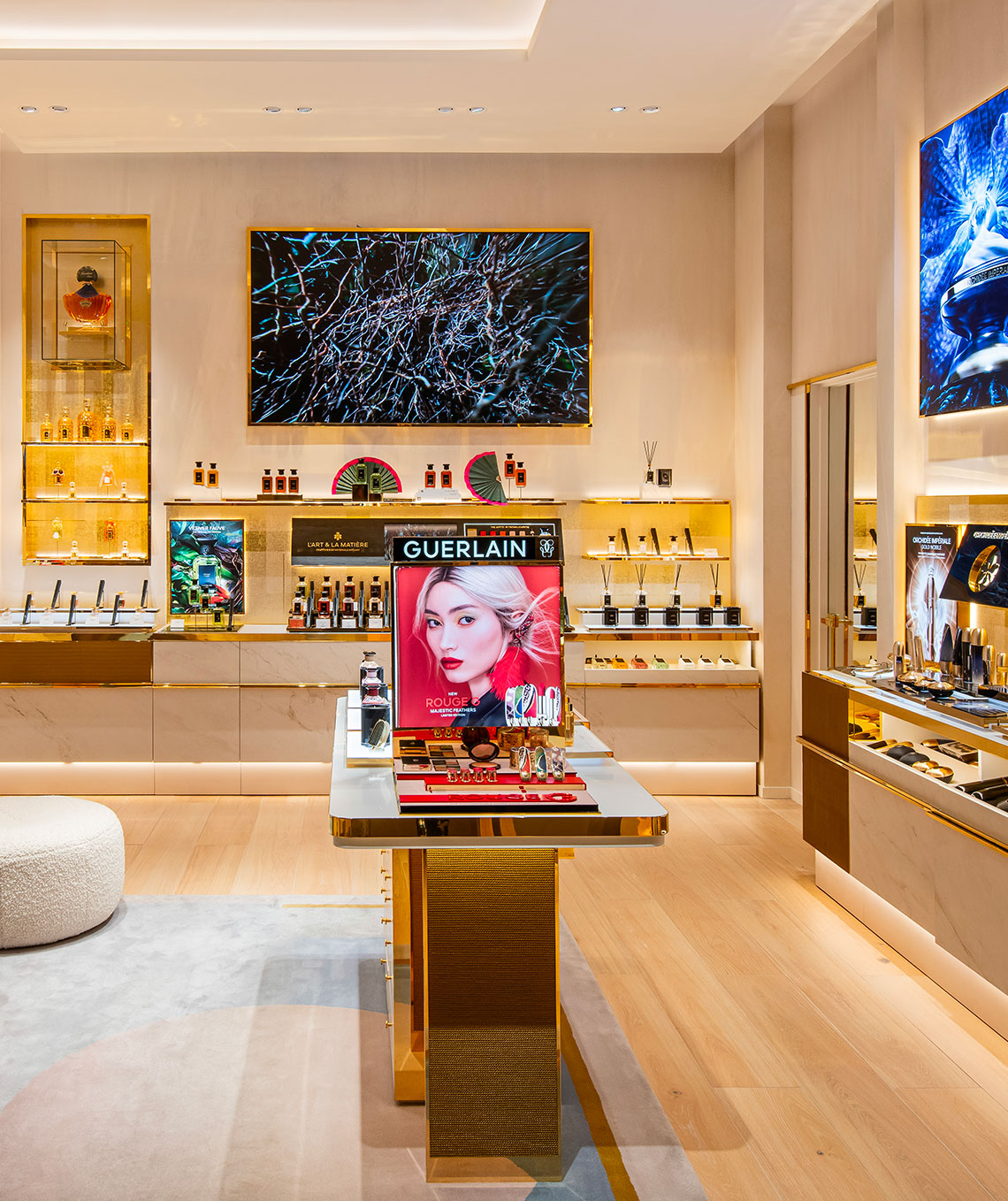 This small space is a show piece for the brand. With custom made wood glazing system and beautiful stone and plaster interior the space glows when illuminated. It is a special jewel located on the first floor of South Coast Plaza.