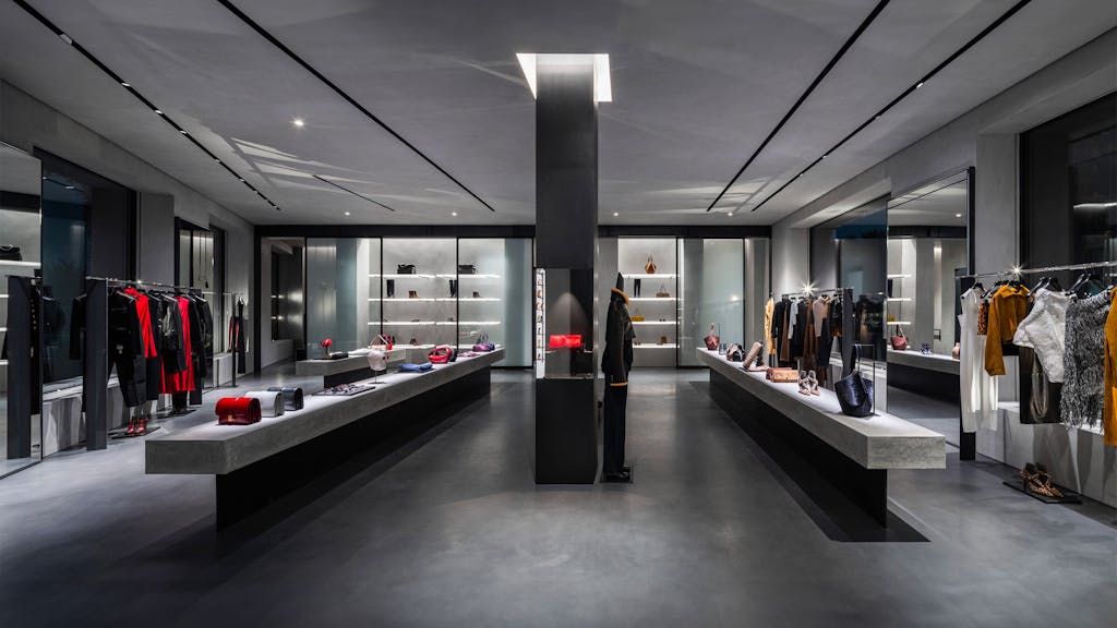 Our second time renovating this location. We first built a Gucci in the space that was very boudoir in design. This time around the space has been reimagined in a darker minimalist style. Custom concrete, decorative metal detailing and glass come together beautifully to fully represent the brand in built form.