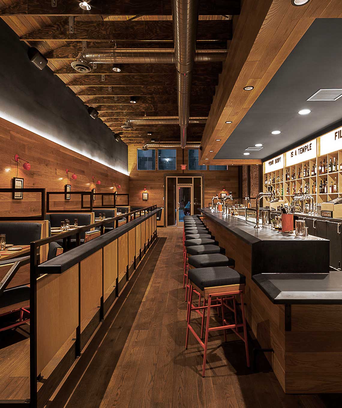 This restaurant was a full interior / exterior build. The existing bar restaurant that was located at the location was raised. Ferrante Koberling built every feature in the bar location including the furniture. This highly custom bar was an early FK restaurant project and help illustrate the progression from which we started in the hospitality sector.